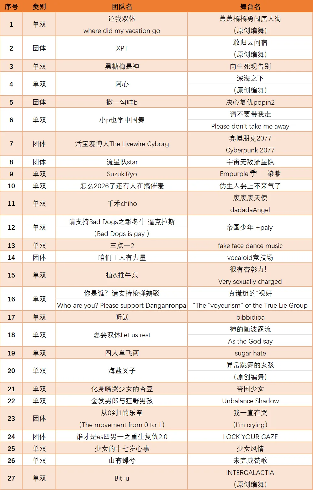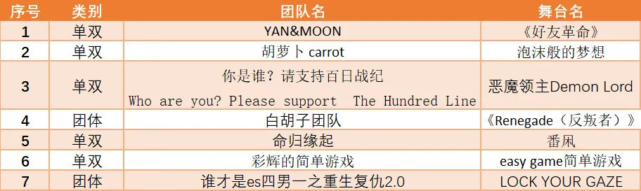 5月2日表演顺序