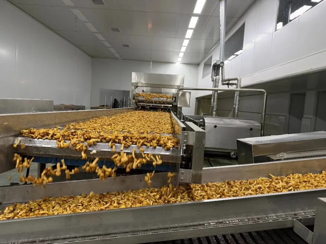 与菌棚基地无缝衔接的速冻深加工生产线已全面投用。洁净车间内,自动化设备高效运转,新鲜滑子菇经气泡清洗、标准化预处理后,全程自动化完成杀菌、速冻等工序,单日产能预计可达20吨,真正实现“从菌棚到车间”的高效衔接。生产线的投用,有效破解了鲜菇保鲜期短、销售半径受限的难题,大幅提升了产品附加值。