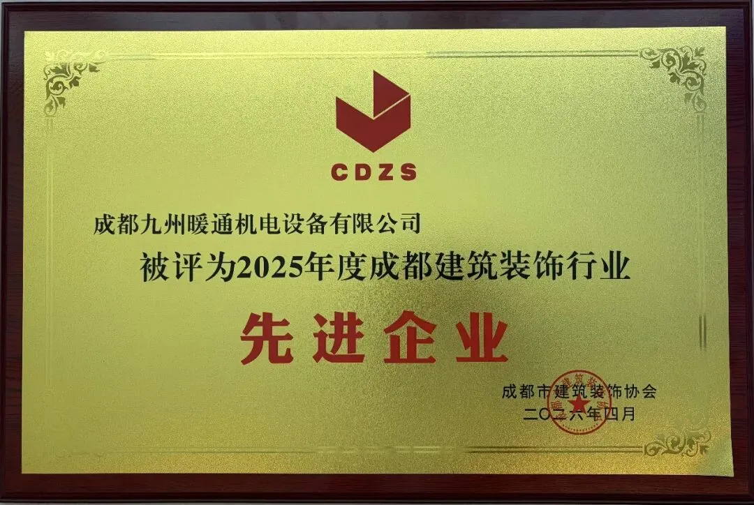 热烈祝贺成都九州暖通机电设备有限公司荣获2025年度成都建筑装饰行业先进企业!