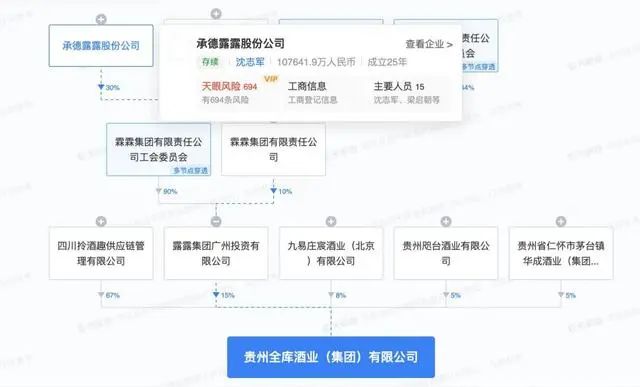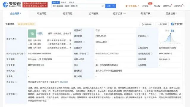 天眼查App显示,近日,贵州全库酒业(集团)有限公司成立,法定代表人为杨悦,注册资本666万人民币,经营范围含酒类经营;食品销售;包装材料及制品销售;专业设计服务;农副产品销售;技术玻璃制品销售等。股东信息显示,该公司由四川拎酒趣供应链管理有限公司、露露集团广州投资有限公司、贵州省仁怀市茅台镇华成酒业(集团)有限公司等5家企业共同持股。
