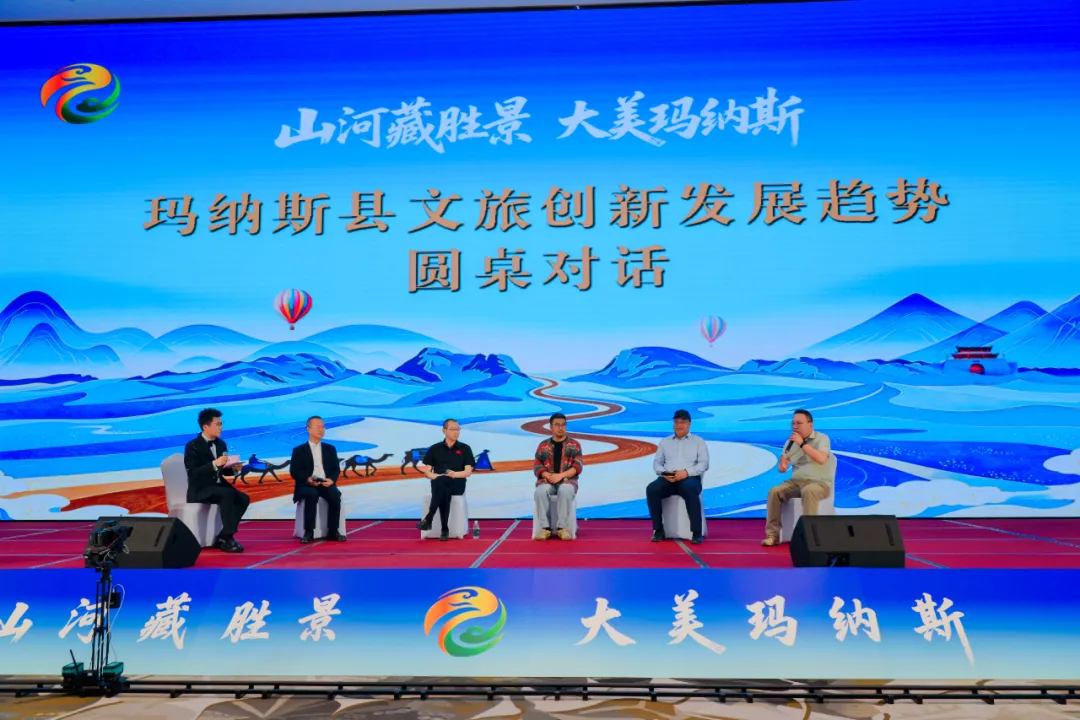 圆桌论坛环节,邀请新疆维吾尔自治区旅游协会会长吉祥,浙江久住文旅集团董事长李照辉,中国国家旅游民宿中心主任董艳丰,新天略策划公司董事长代宪礼,浙江浙旅投资有限责任公司新疆项目总经理王昶嵩五位嘉宾,围绕 “玛纳斯县文旅创新发展趋势” 主题分享。嘉宾们一致认为,玛纳斯资源独特、区位优越,应坚持轻资产、线路化,聚焦民宿、酒旅、康养、自驾等业态,政企携手做强品牌、做优服务,共推玛纳斯文旅高质量发展。