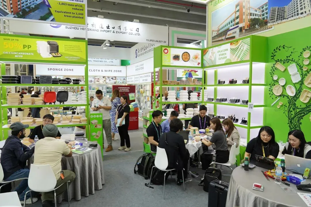作为参展超过30届的“老广交”,江门市意奇高工贸有限公司(以下简称“意奇高”)以“绿色环保+设计创新”为核心发展驱动力,在本届广交会上一举拿下6个展位,现场人气爆棚、客商接踵而至,成为展区内的一大亮点。步入意奇高展位,简约大气的绿色主色调设计,与企业主营的预制菜配套环保用具、可降解环保用具及环保家庭用品的核心定位高度契合。“我们特意以绿色为主色调设计展位,就是为了突出环保健康的核心概念,让每一位来访客商都能直观感受到我们产品的特色。”该公司销售经理梁锦全介绍。