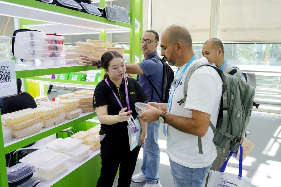 本次展会,意奇高共带来300多款产品,其中一款自主设计、拥有专利授权的分刻度酒杯成为畅销单品,不同刻度对应不同酒类,精准满足消费需求,已畅销美洲大型商超,其中一家大客户每次下单可达7个货柜。此外,企业推出的淀粉材质餐盒,经人体工学设计优化,不仅受力更强,保温性能也优于普通塑料产品,深受客商青睐。