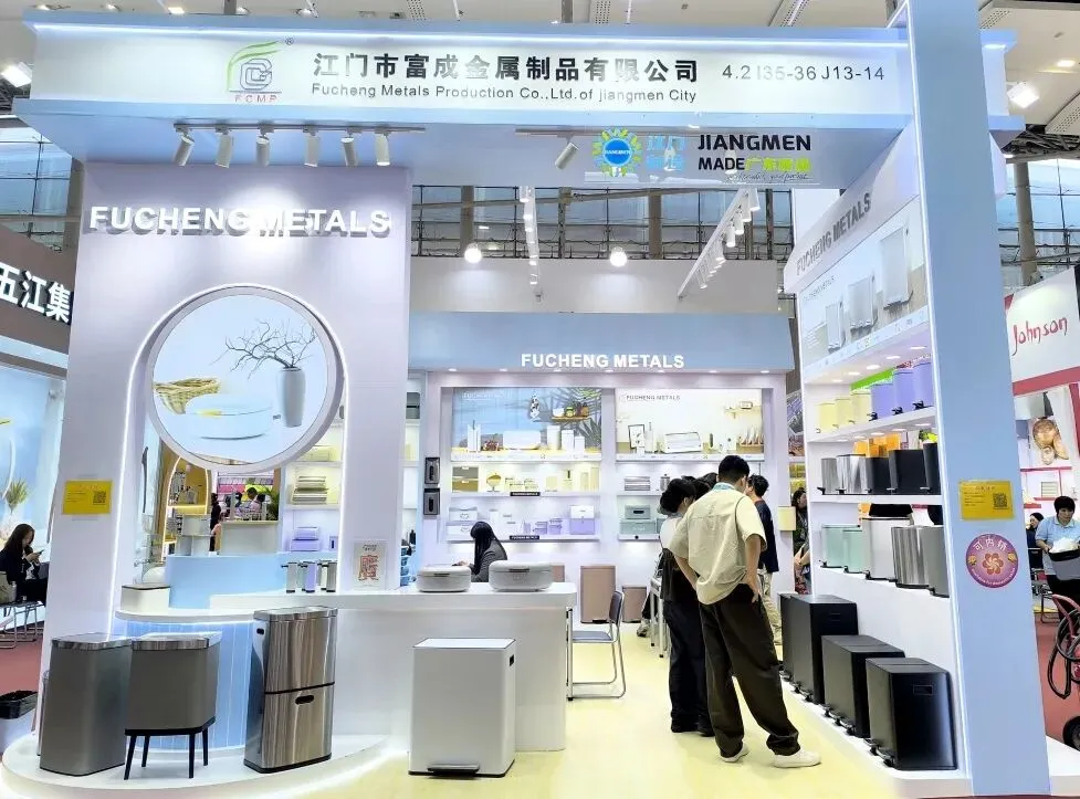 在广交会上同样表现亮眼的还有江门市富成金属制品有限公司(以下简称“富成金属”),作为一家集研发、生产、销售于一体的中外合资企业,该公司专注不锈钢制品制造,垃圾桶月产能达40万套,储物箱等厨房五金制品月产能20万套,产品95%出口,畅销欧洲、美洲、澳大利亚等四十多个国家和地区。