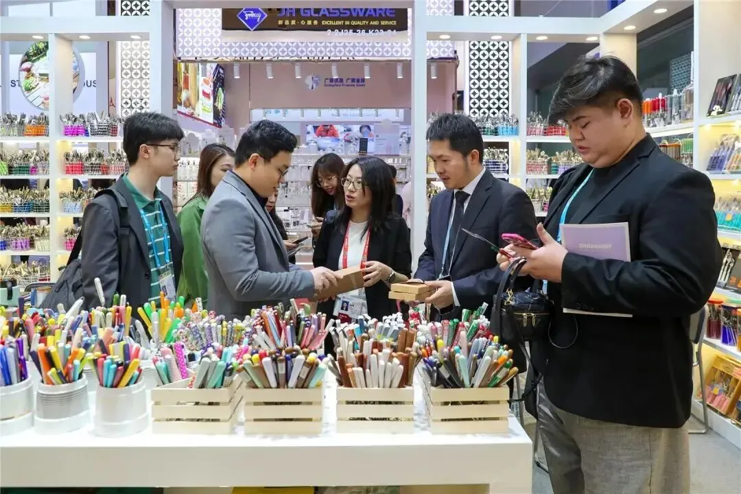 正大团队在几家汕头企业的展位间走走停停。日用塑胶制品展位上,几位采购代表拿起收纳系列样品反复端详,对比不同材质的厚度与手感;几步之外,一家陶瓷企业的台面上,几套新近打样的青花彩瓷餐具被依次摆开,工作人员一边展示一边回应着关于花色定制与交货周期的询问。再往前,几位代表围在工艺家居展区,轮番拿起手工家居饰品细看,一边轻抚纹路一边对照产品说明。整个上午,正大团队在汕头展位间来回穿梭,交谈声、样品摩挲声与展馆的人流声交织在一起。