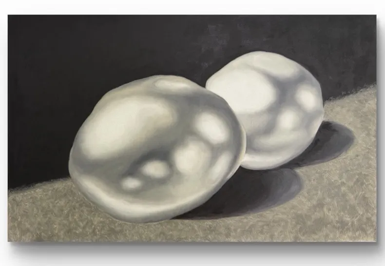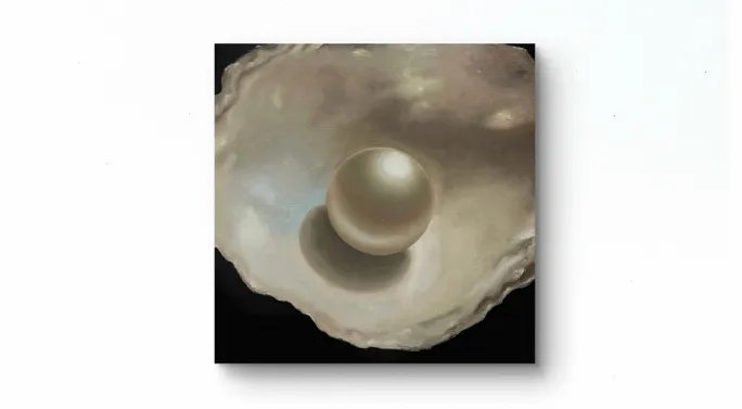这批作品是她绘画的起点,她从温暖的记忆深处打捞出这些细微的珍宝,安静地、反复地打磨,然后将这些微微发亮的力量分享给你我。如果说这些“发光的物”构成了视觉的表层,那么其真正的核心则指向一种更为隐秘的情感结构。艺术家提及,珍珠之所以重要,是因为它与一位极为亲近的家人相连。那是一种温润而内敛的性格,在长时间的相处中显现出稳定而明亮的力量。正是在这一意义上,珍珠不再仅仅是物质,而成为一种情感的转译。这种对光的处理,使绘画从再现对象转向了一种更为内在的关系建构。光不再来自外部,而是心灵之源,物的质地被重新理解为回忆与感情的沉积。