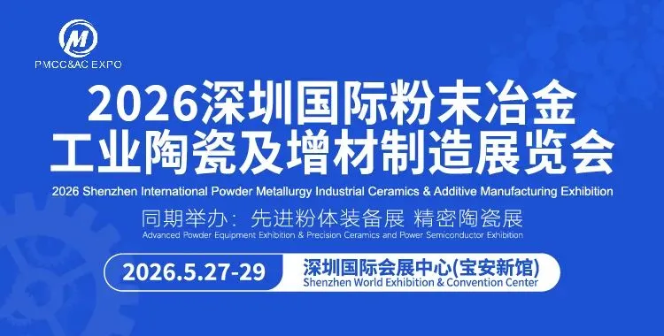 2026深圳国际粉末冶金、工业陶瓷及增材制造展览会将于2026年5月27-29日在深圳国际会展中心(宝安新馆)举行,预计展出面积达20000平方米,参展商300+,专业观众人次30000+,汇聚粉末冶金、硬质合金、工业陶瓷、精密陶瓷、增材制造、粉体装备等产业链上下游知名企业,是行业政策动态展示、新产品发布、学术交流、采购交易的国际化、专业化的商贸服务平台。