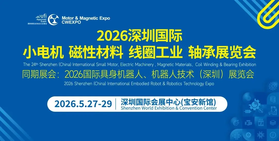 第24届深圳国际小电机及电机工业、磁性材料展览会将于2026年5月27-29日在深圳国际会展中心(宝安新馆)举行,将汇集众多电机磁材相关行业精英,相互交流,共享盛会。