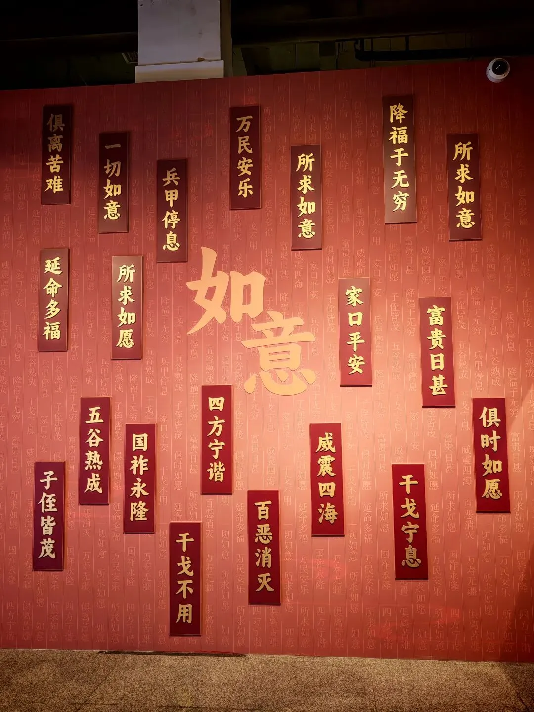 这面墙上的祝福全部来自南涅水石刻,一千多年前,来自古印度的佛教在山西这片土地上传播,对于宗教的内涵和仪轨,百姓们未必全然知晓,对于美好生活的祈愿却长久地刻在这些石头上。这些对国对家对健康对子侄对丰收的企盼,早已超越宗教信仰,在岁月流转中,悄然成为一种代代传承的文化基因,维系着我们中国人朴素而炽热的共同情感和审美意向。山西博物院会展中心正在展出《融·变——南涅水石刻》展览,是南涅水石刻发现以来首次异地大规模展览,让我们得以全方位去欣赏这座文化艺术的宝库。