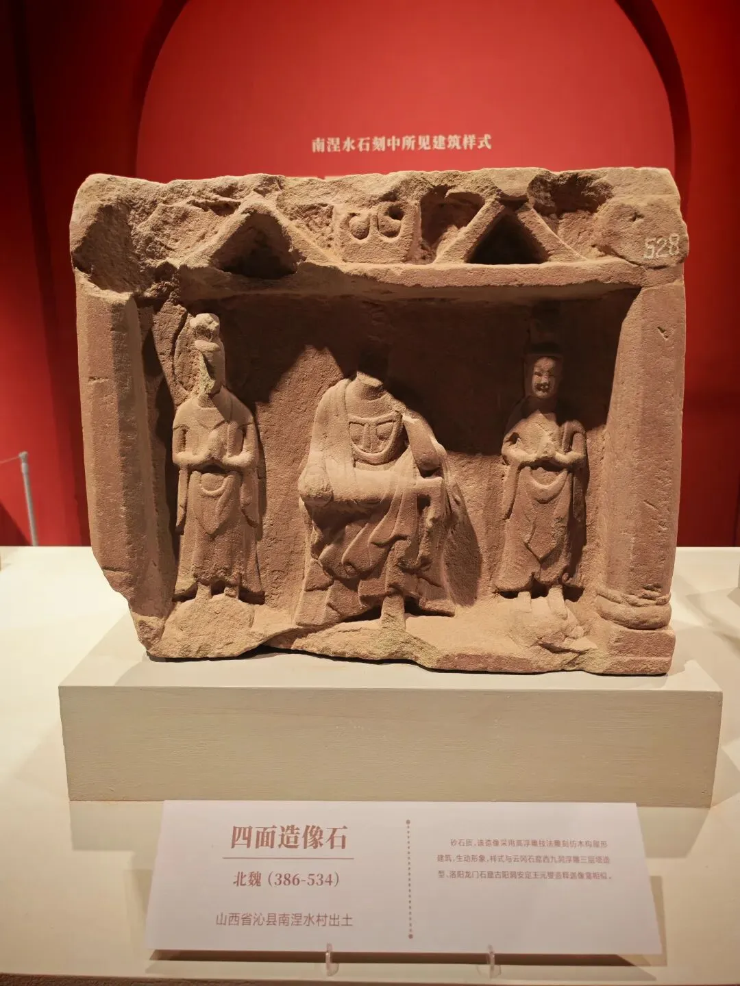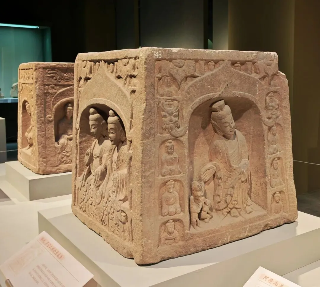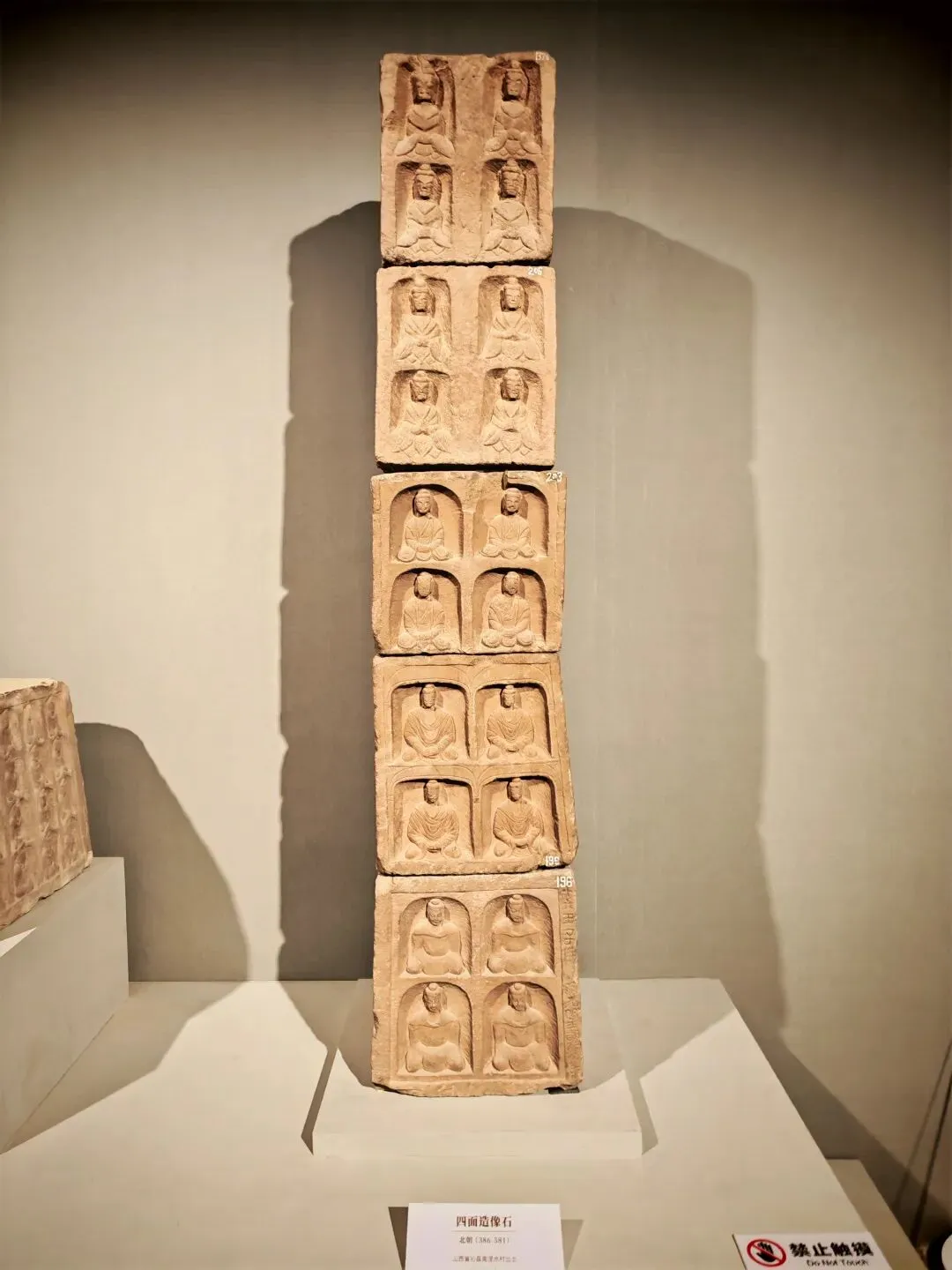 南涅水出土四面造像石400多件,数量众多,时间主要集中在北魏到东魏,题材丰富,雕刻精致,展现了佛本生、佛传和因缘故事的大千世界。最常见的四面图像分别为,二佛并坐、树下思惟、阿育王施土和弥勒菩萨说法图。