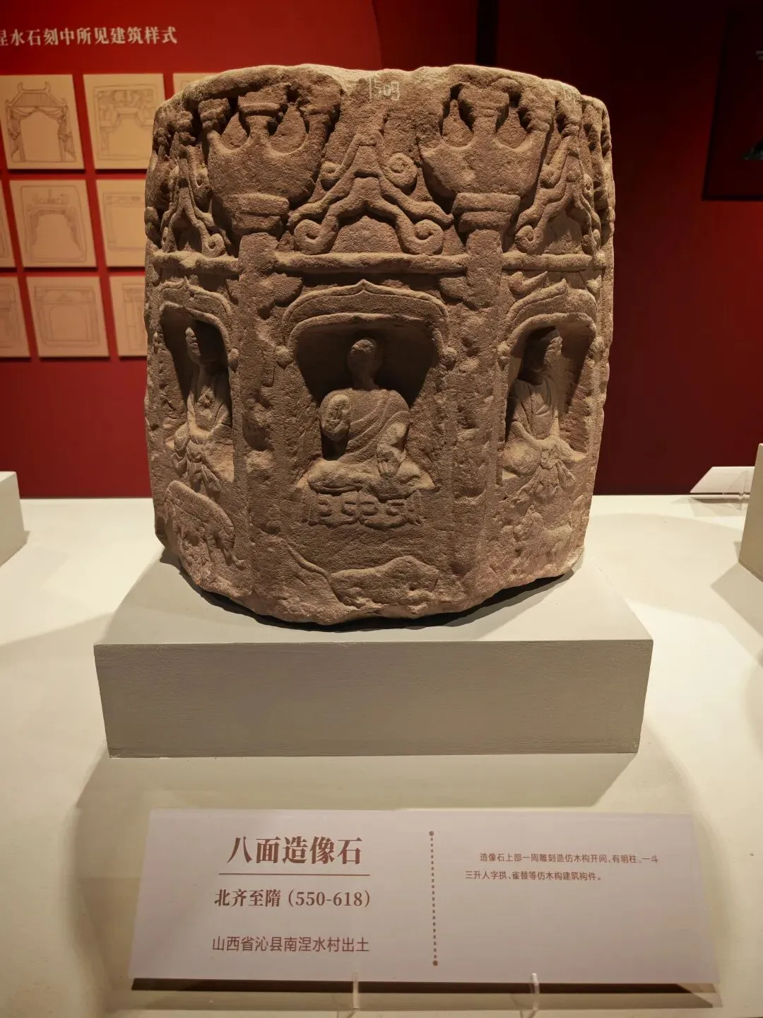 四面造像石逐层垒叠模仿佛塔,其上精细地雕刻了屋檐、斗拱等建筑构件,可谓石窟和木构建筑的微缩模型,从中可以看到中西方建筑元素。