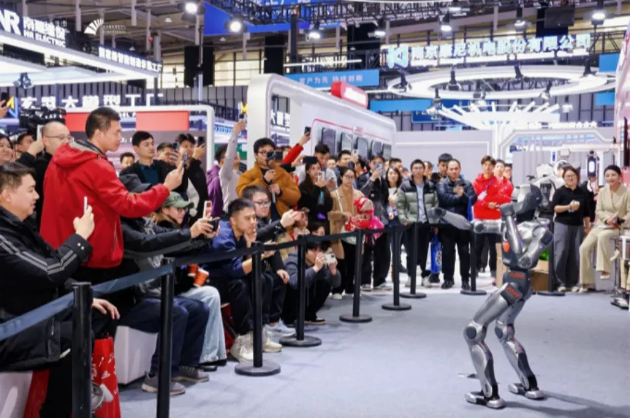拳击台上,小小“拳击手”挥拳对抗,捍卫各自荣耀;栗色披肩长发、妆容精致的女性人形智能机器人,模仿人类表情做出“wink”眨眼动作;身着交警服装的人形机器人文能站在岗台上指挥交通,武能扭转腰部、使出一记旋风高抬腿……连日来,南京国际博览中心熙熙攘攘,各类新技术新成果吸引着众多参观者的目光。