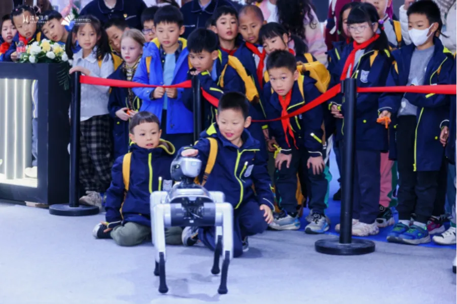 互动体验区同样人头攒动。由东南大学科研团队自主研发的国内首辆全轮转向全轮驱动、四轴八桨构型飞行汽车,集成半人形机器人与模块化太空舱核心架构打造机器人“小卖部”的“宁集萃宝”机器人太空舱,以及无人咖啡机、无人扫地机、无人飞行器等多种智能设备前,观众纷纷排起长队,争相体验科技带来的便捷与新奇。