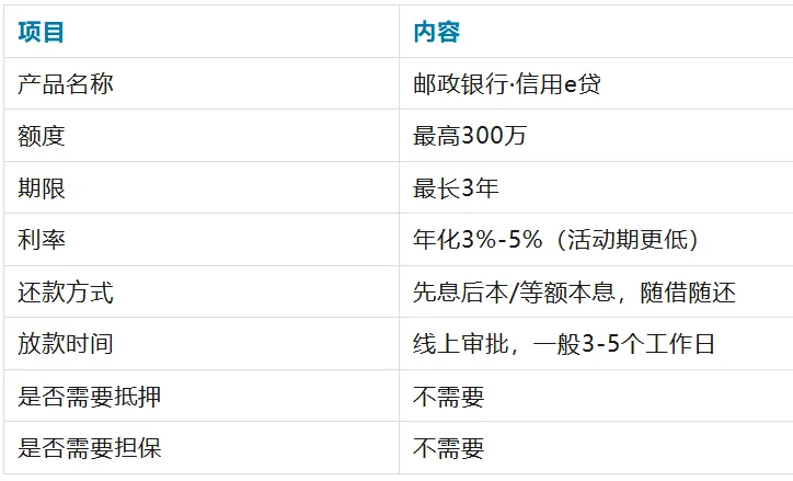 我在广州做了10年企业融资,接触过几十家银行的信贷产品,邮政信用e贷有3个明显优势: