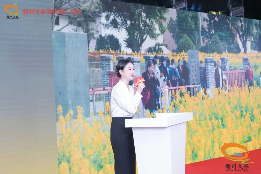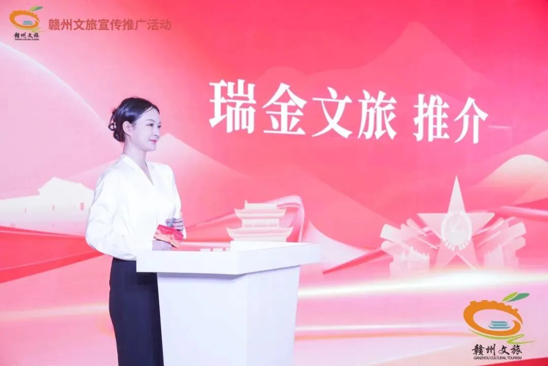 在文旅推介环节,瑞金文旅推介官介绍了瑞金深厚的红色历史文化、人文风情、特色美食, 全方位、多角度展示了红都瑞金的魅力和风采, 最后推介官诚挚邀请各界朋友前来瑞金共赴红色之旅,重走红军长征之路,探寻共和国之根!