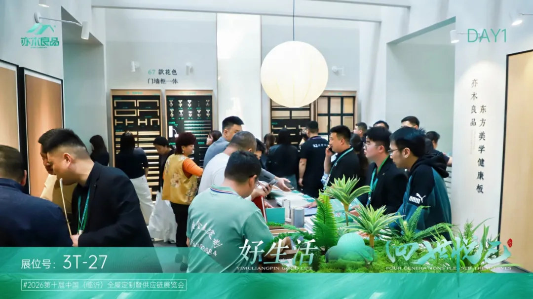 亦木良品以全链路生态赋能者姿态重磅参展,凭借「好生活・四世悦己」主题展馆、系统化门墙柜解决方案、四大院全维赋能体系,成为全场人气与口碑双冠的焦点,四天展会持续火爆,引爆行业关注。