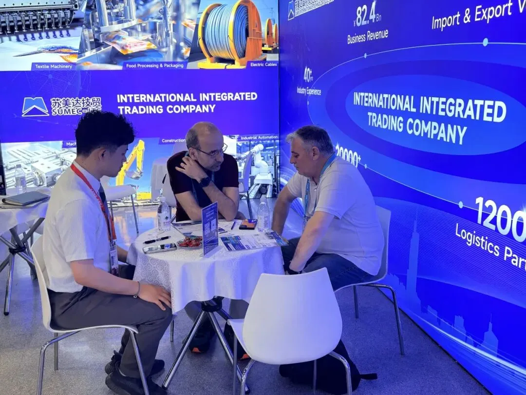 展会期间,苏美达技贸延续往届火爆人气,展位咨询者络绎不绝。围绕海外建厂规划、设备集中采购、门到门物流运输等核心需求,苏美达技贸团队以饱满的热情和专业的态度,为中外企业量身打造全球供应链集成服务解决方案。一方面助力国内供应商精准对接海外市场,提升出海效率;另一方面为海外采购商严选机电设备、大宗商品等优质资源,通过严格的品控与风控机制,全方位保障采购安全,一站式“全球购”服务获得海内外客商高度认可。