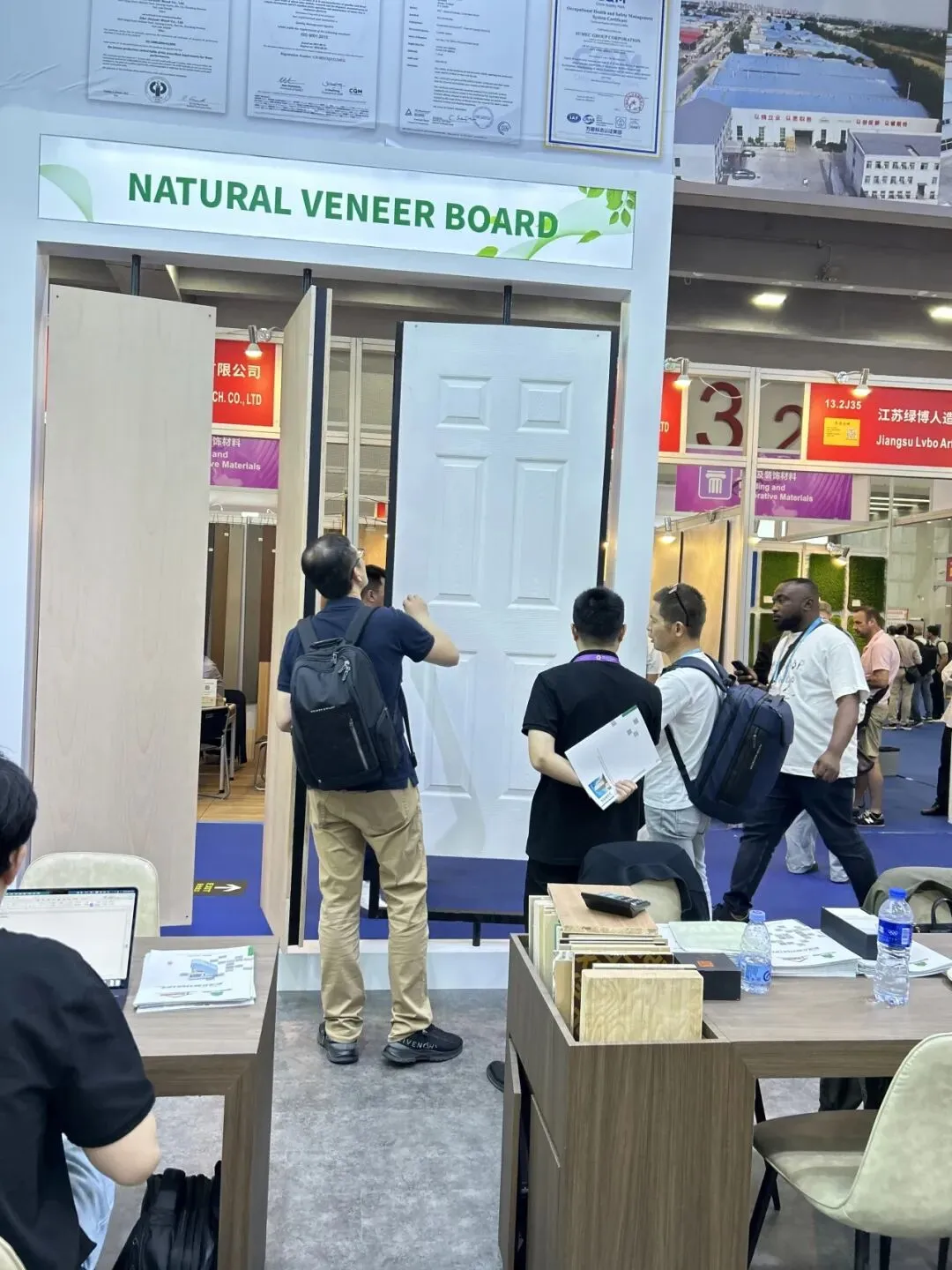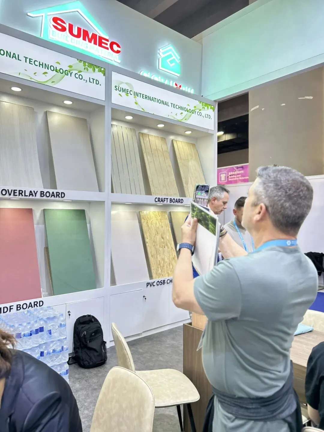 同时,绿色环保、结构稳定的优质胶合板系列也获得高度认可,团队介绍了其在原材料筛选、工艺把控及建筑装饰、家具制造等领域的广泛应用,客商围绕规格、定制、交付等深入洽谈。两大产品线相互呼应,充分展示了苏美达技贸在建材供应链上的整合实力与品质把控能力。