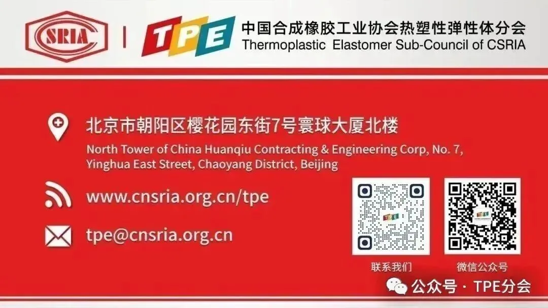中国合成橡胶工业协会(CSRIA)于1990年经国家民政部批准正式成立,具有独立法人资格,是中国首批正式注册的行业协会。中国合成橡胶工业协会热塑性弹性体分会(简称TPE分会)成立于2017年,是中国合成橡胶工业协会(CSRIA)的分支机构。TPE分会由热塑性弹性体生产企业及与其相关的上游原材料企业、下游制品企业、科研院所、助剂和设备等配套企业、咨询和检验服务机构等诸多企事业单位和团体组成的跨地区、跨行业和跨所有制形式的上中下游一体化、产学研用相结合的全国性、行业性、非营利性的社会组织,是热塑性弹性体(TPE)全产业链的合作平台。TPE分会在制定行业标准、规范行业行为、加强行业交流、维护行业利益、开拓国际国内市场、开展行业咨询等方面更好地服务与支持热塑性弹性体行业,在整合热塑性弹性体产业链资源、促进上下游和产学研用协同发展、提升热塑性弹性体全产业链竞争力、促进全国热塑性弹性体产业规范、有序和持续健康发展发挥了重要作用。