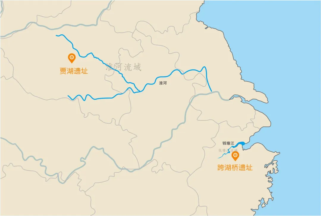 贾湖遗址、跨湖桥遗址位置示意图