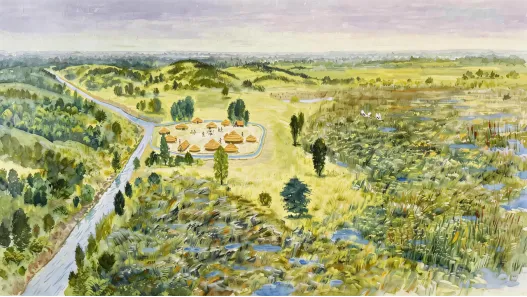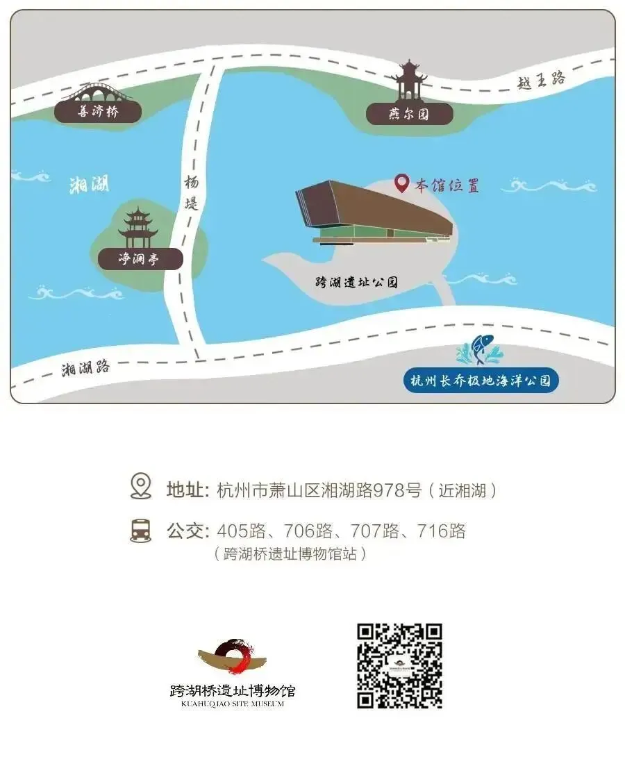 跨湖桥遗址位于浙江省杭州市萧山区湘湖国家旅游度假区,北依钱塘江、东濒杭州湾,兼得江海环抱之利、咸淡水滋养之惠。地处海陆交汇的要地,赋予了跨湖桥文化海洋文明与内陆文明兼容的鲜明特质。