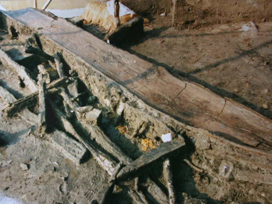 跨湖桥遗址·独木舟遗迹出土状态