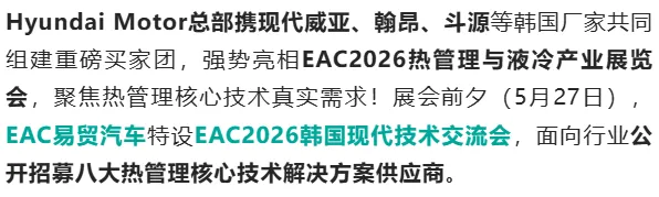 为凝聚行业共识、共绘发展蓝图,抢抓热管理与液冷产业变革新机遇,易贸汽车携手 AUTO 行家、热管理行家,将于5月28-29日在上海汽车会展中心举办EAC2026 热管理与液冷产业展览会。展会同期重磅打造五大主题创新论坛,覆盖新能源汽车、压缩机、商用车、数据中心液冷与 AI 芯片散热、海外市场出海对接等核心领域,搭建集技术展示、思想碰撞、产业对接于一体的高端平台,助力产业高质量协同发展。