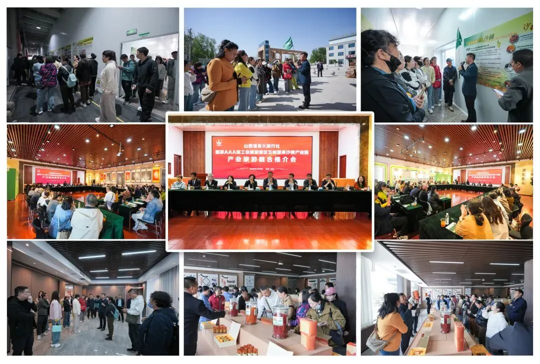 在这个春和景明的美好时节,2026年4月25日,在美丽的滹沱河畔国家AAA级工业旅游景区五峰慧果沙棘产业园与山西省各大旅行社成功举办了产业旅游融合推介会。园区董事长赵志侃、马董、总经理苏春香等领导与合作伙伴纵横文旅韩亚虎总经理等领导及山西省内的多家旅行社总经理、资深地接部经理及优秀导游代表欢聚一堂,共商晋地特色产业沙棘与文旅行业融合高质量发展大计。