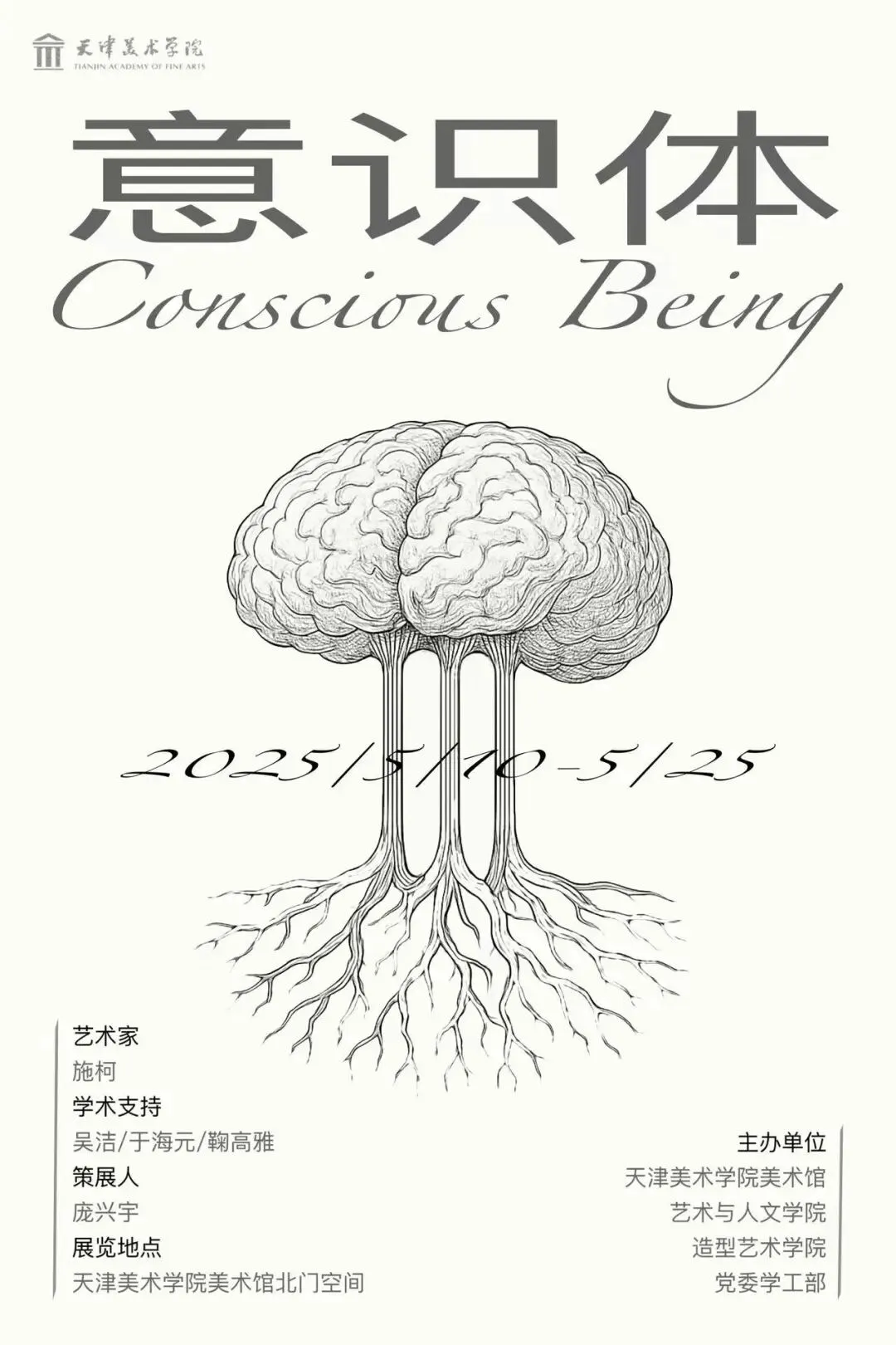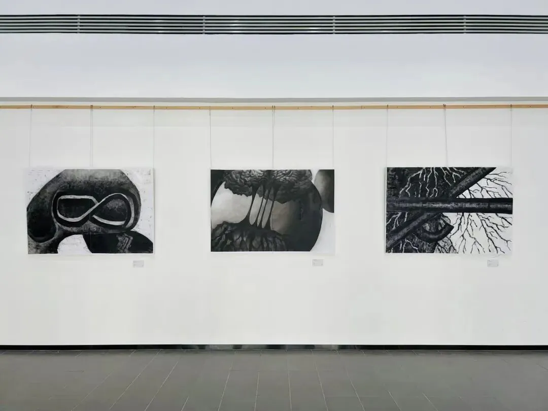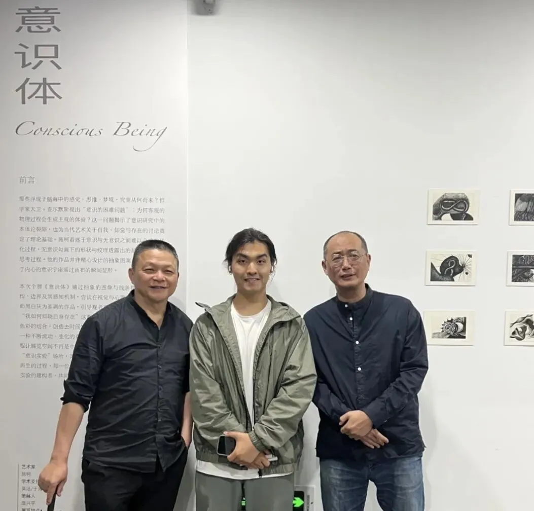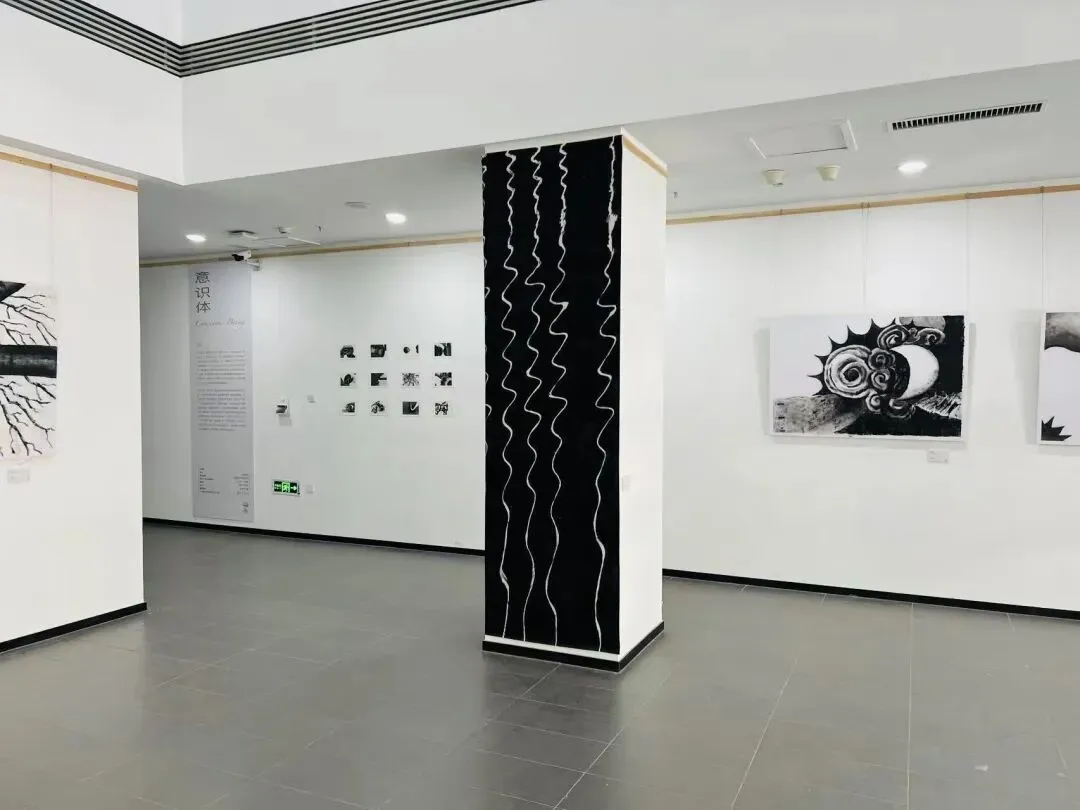 本次个展《意识体》通过抽象的图像与线条探讨意识的结构、边界及其感知机制,尝试在视觉与心理间架设通道,借助黑白灰为基调的作品,引导观者重新审视“我是谁”以及“我如何知晓自身存在”这两个问题。利用抽象图形与理性色彩的结合,创造去时间性、去中心化的感知体验,呈现出一种不断流动、变化的存在状态。观众与作品交流的感知过程让展览空间不再是中性的白盒子,而是一个持续进行中的“意识实验”场所,其中的行走、注视与思考,构成了意识再生的过程,每一位走入展览空间的人,都会成为本次意识实验的建构者,共同织就一场无形的意识之网。