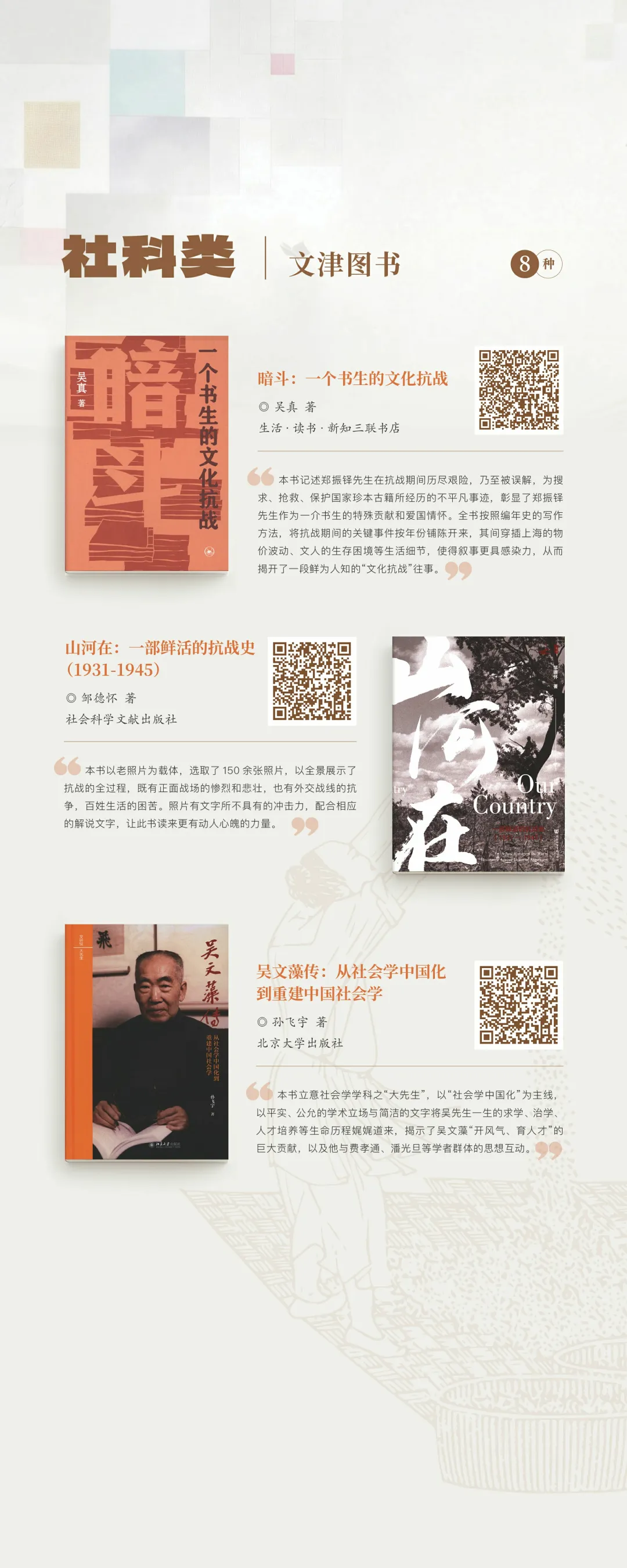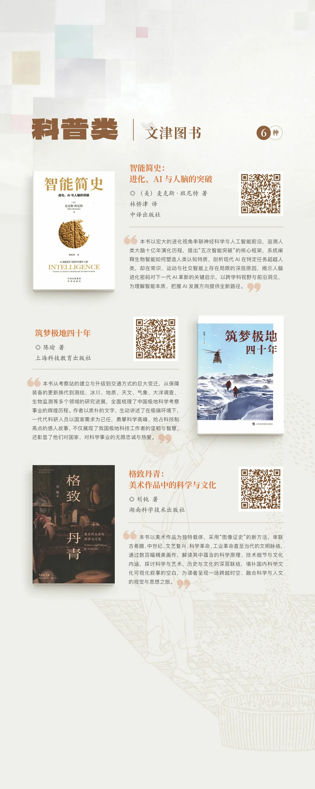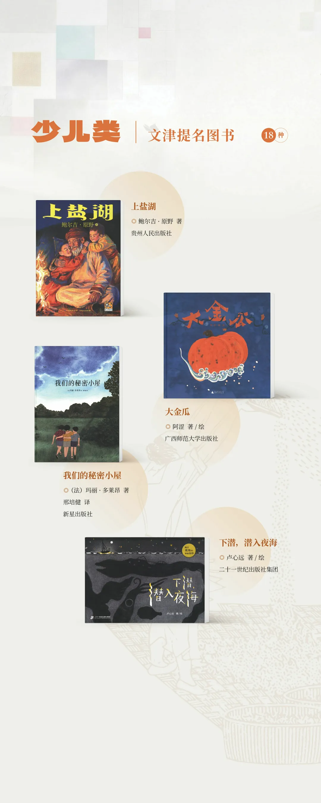 “文津图书奖”设立于2004年,是国家图书馆主办并联合全国图书馆界共同参与的公益性图书奖项。文津图书奖采用《簸扬图》为标识,有“读书如稼穑,勤耕致丰饶”之意。该奖项命名为“文津”,不仅缘起于国家图书馆四大专藏之一的“文津阁四库全书”,也寓意“文化津梁”,彰显了图书馆作为传承文化的桥梁,为促进作者、出版者和读者之间的良性互动发挥积极作用的使命。“文津图书奖”评选每年举办一次,参评图书侧重于能够传播知识、陶冶情操,提高公众思想道德素质与科学人文素养的普及性图书。2026年4月23日第二十一届揭晓,社科类、科普类、少儿类共20种(社科类8种、科普类6种、少儿类6种)图书获奖,49种图书获得提名奖。
