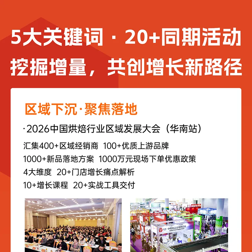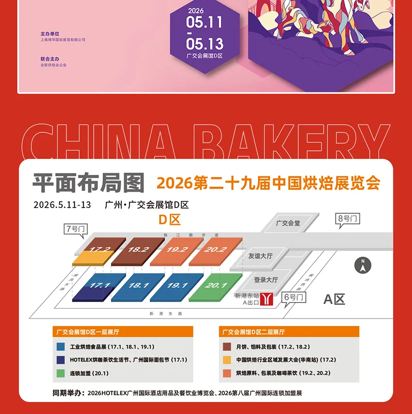 2026年正值中国烘焙业高质量发展30周年,作为行业开年首场“烘焙+”盛会,本届将同期举办“中国烘焙高质量发展30周年庆典”系列活动,全面展示中国烘焙产业三十年辉煌成就与创新突破。同时再度携手HOTELEX酒店餐饮展及Gife连锁加盟展联动举办,为中国烘焙+食饮产业链上下游企业打造更广阔的交流服务平台,加速激发行业新动能,推动中国烘焙业与国际市场深度接轨,驱动全产业链升级,开启“品质创新向未来”的新篇章!