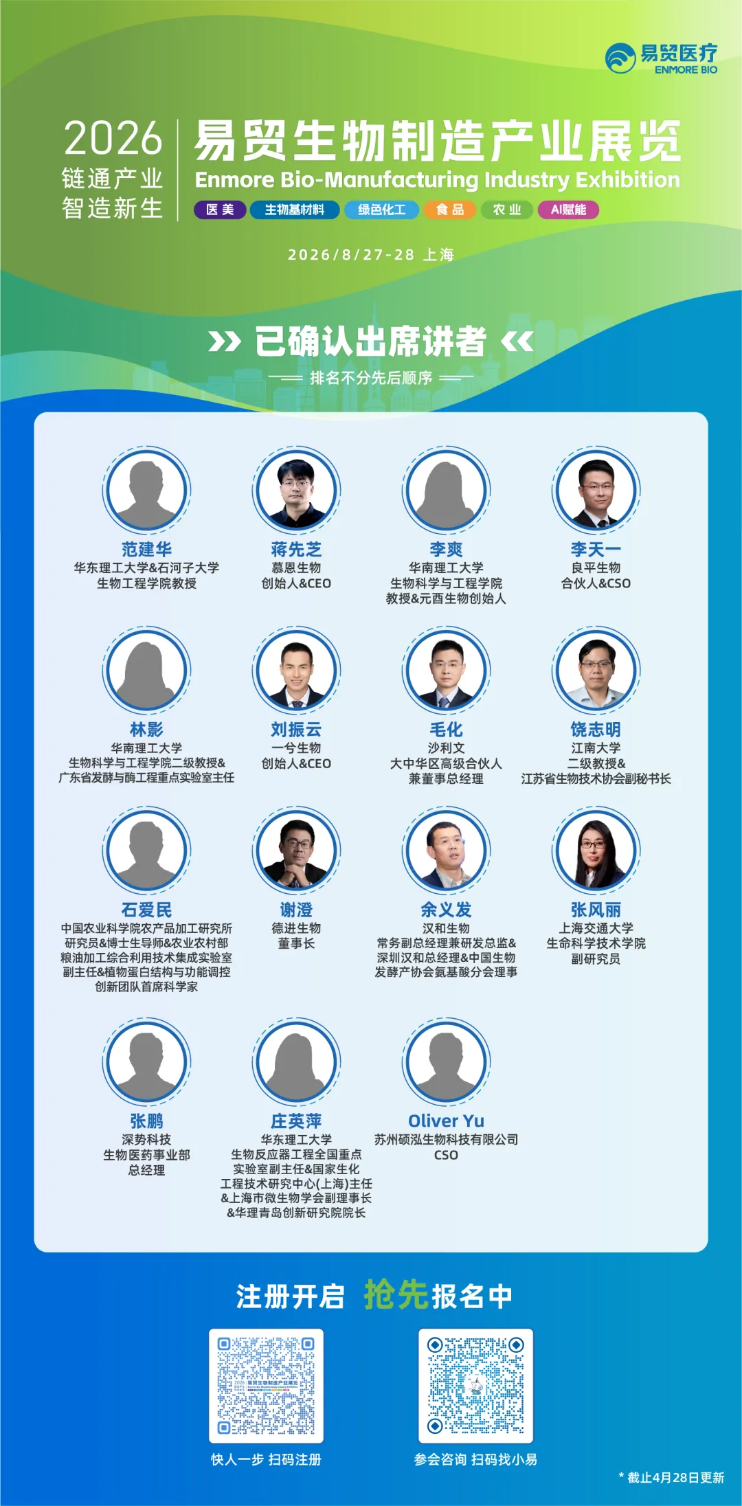 本届展会重磅集结生物制造全产业链核心力量,汇聚行业标杆企业掌舵者、顶尖高校学术领军者、国家级科研院所权威专家,以及全球行业智库核心代表,阵容含金量拉满!