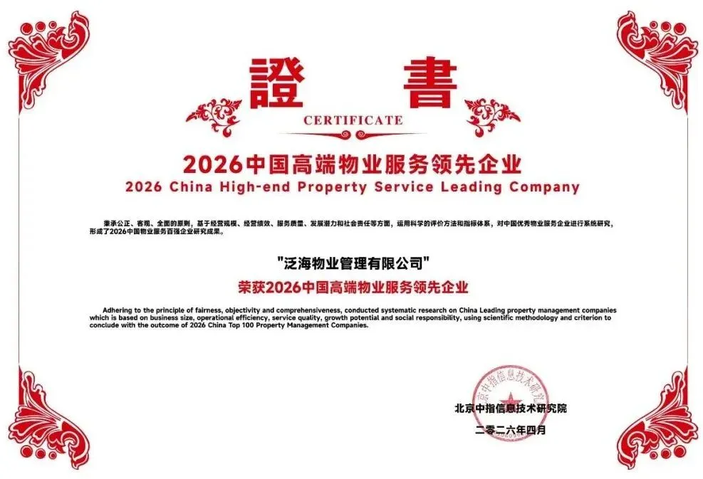 凡是过往,皆为序章。连续十余年跻身中国物业服务百强企业,是行业对泛海物业综合实力的高度认可,更是公司三十余年坚守初心、砥砺奋进的有力见证。站在新的历史起点,面对行业"品质攻坚"的深刻变革,泛海物业将以更加开放、专业、智慧的姿态,深化科技赋能、精耕服务品质、强化党建引领,在时代的浪潮中劈波斩浪,向着最受客户信赖的现代服务企业目标笃定迈进,为行业高质量发展贡献标杆力量,为守护城市美好、保障业主安居书写绚烂华章。