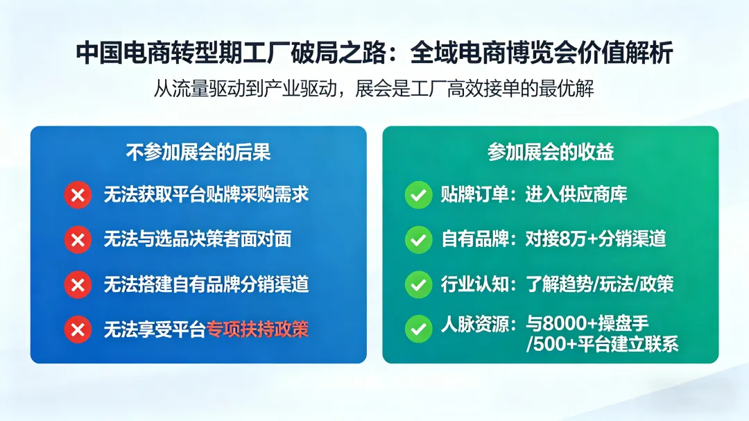 当“工厂直供”成为电商平台的兵家必争之地,当“贴牌代工”与“自有品牌”成为工厂突围线上订单的两条生命线,一个清晰的信号已经发出:工厂想要真正接到线上订单,只能参加全域电商博览会。
