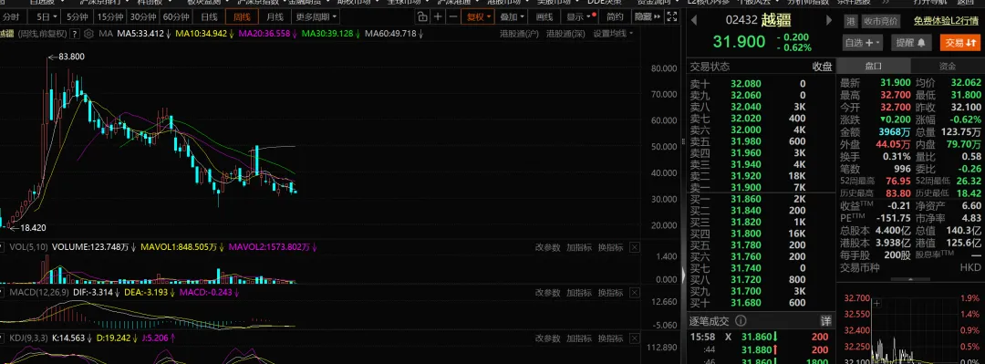 越疆科技在2024年12月23日港交所挂牌成功上市,成为协作机器人第一股,公司股价在上市4个月内大幅度上涨,涨幅达到约260%,最高股价涨到83.8港元,之后股价就开始一路走低下跌,截至4月27日收盘价为31.9港元,市值为140.3亿港元。3、越疆科技介绍