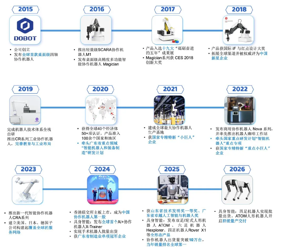 4月27日,创业板更新受理了一家企业IPO申请,该企业是公众号老朋友了,它就是2024年12月23日在港交所挂牌的协作机器人第一股“深圳市越疆科技股份有限公司”(以下简称“越疆科技”)。2025年12月30日越疆科技就在深圳证监局提交了A股IPO上市辅导备案,刚好距离港股上市一周年,拉开了H股回归A股的征程,推动形成A+H股布局。4个月之后就在深交所提交创业板IPO申请,并且以第三套标准申请上市,由国泰海通保荐护航,本文根据提交招股书介绍一下越疆科技情况。