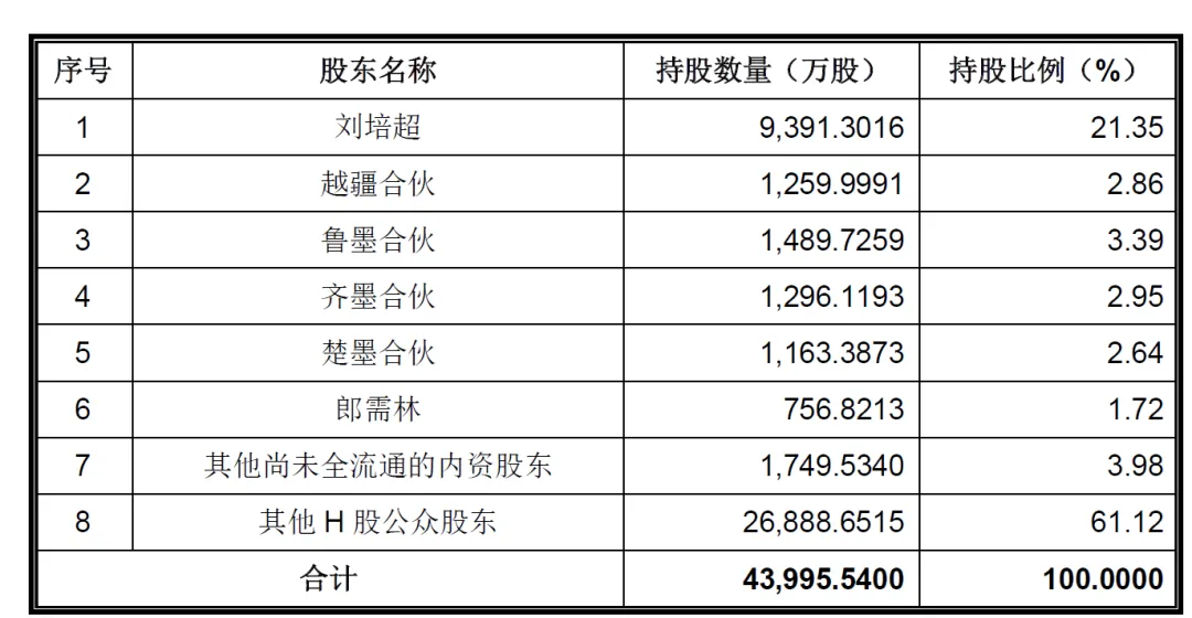 根据招股书披露,截至招股书签署日,除了刘培超、、郎需林、四家员工持股平台(越疆合伙、齐墨合伙、鲁墨合伙、楚墨合伙)以及尚未全流通的内资股东,其他股东的持股情况目前不掌握。4、主要财务数据和指标