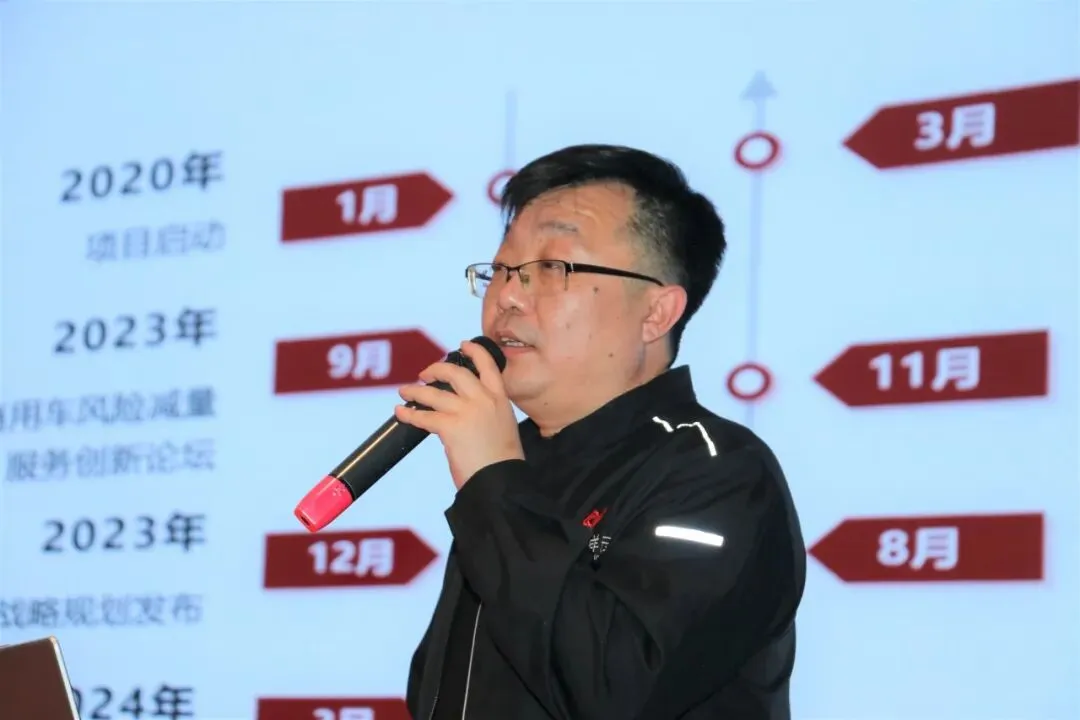 推介会上,公司市场推动总监徐建国为与会嘉宾带来关于中富祥云商用车风险减量服务的深度解读。徐建国指出,面对复杂多变的道路运输环境,中富祥云创新性地提出了基于“人、车、环、管”四大维度的风险减量体系。他强调:“我们不仅关注车辆本身的安全性能,更深入到驾驶员的行为习惯、行驶环境的动态变化以及企业管理的标准化流程中,实现全方位、无死角的安全管控。”