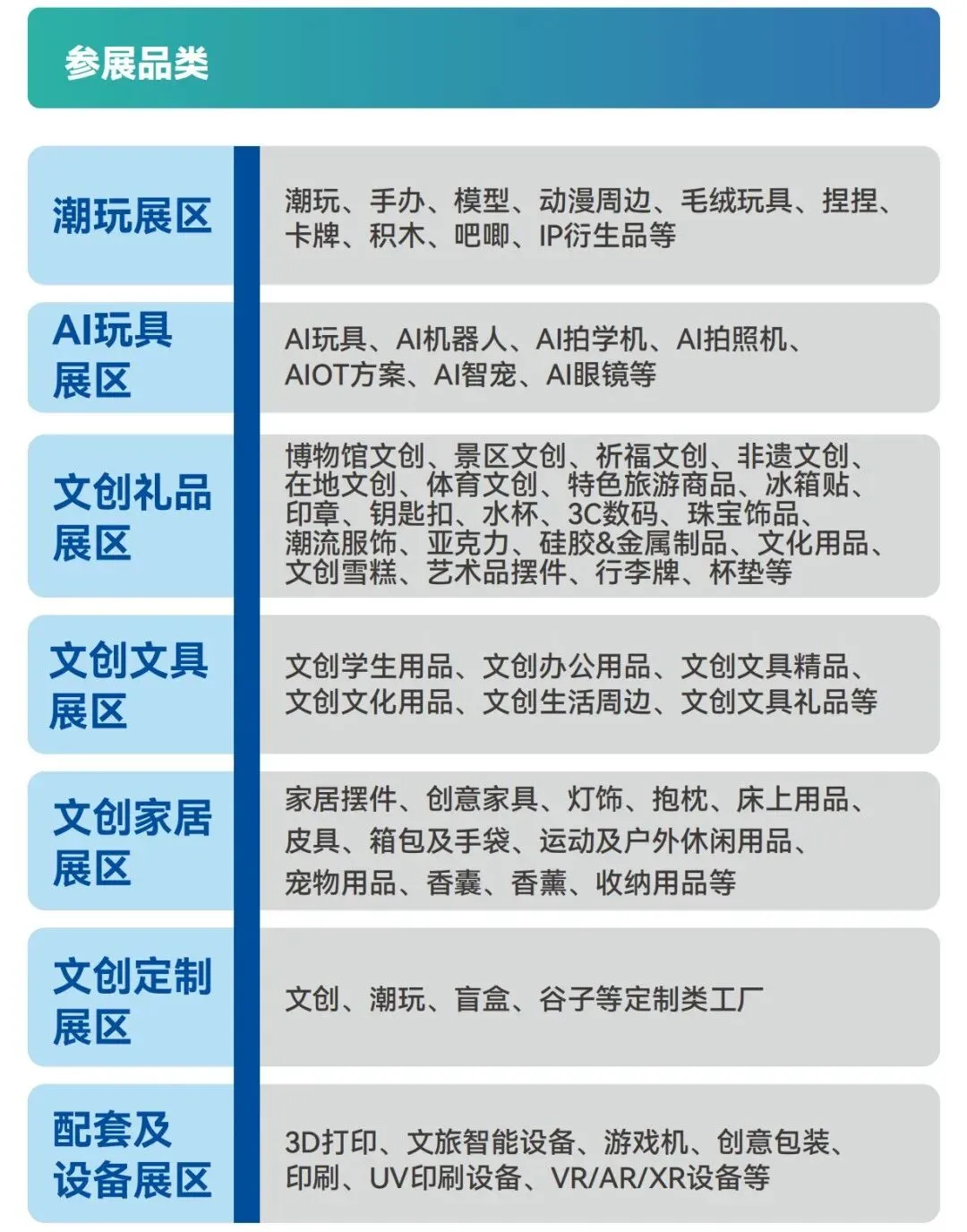 文旅文创专属展区:对接全国5A景区、文旅集团、文旅项目、城市伴手礼品牌,聚焦景区文创、城市IP、文旅周边、研学文创,搭建文旅项目与文创产品的精准对接平台,推动文旅文创深度融合落地。