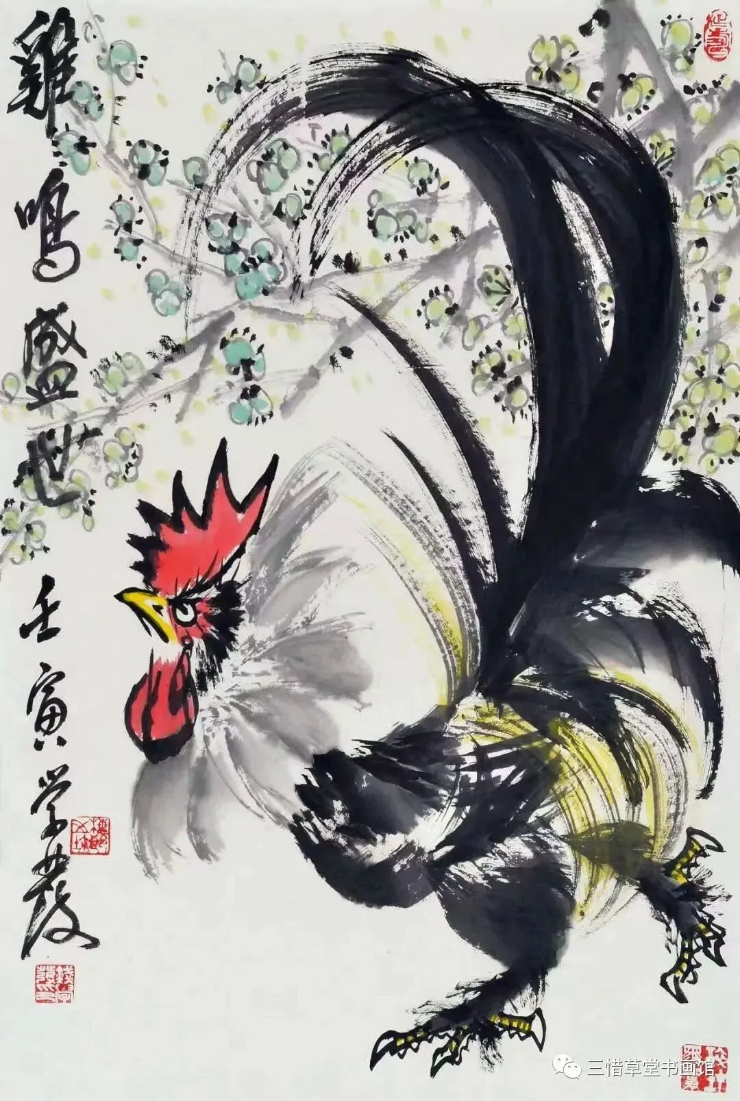 (三惜草堂藏品:钱学发 “鸡鸣盛世” 尺寸:45cm×68cm)
