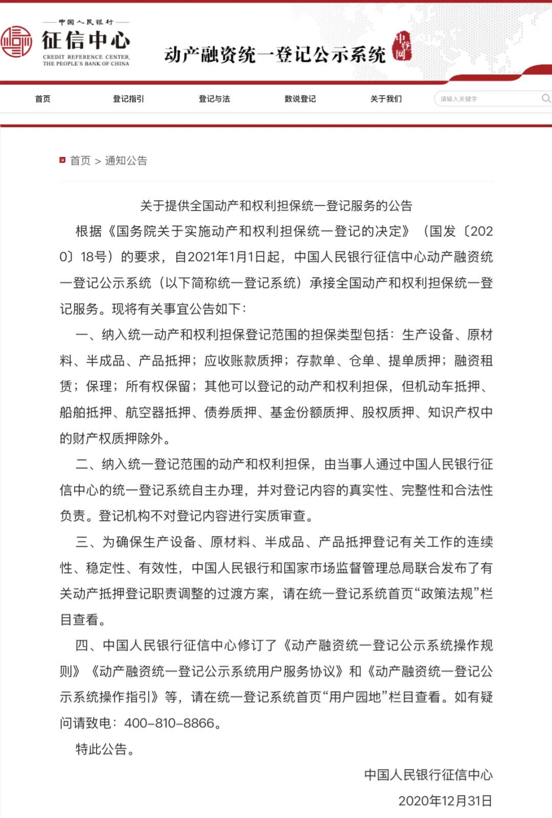 图1 征信中心提供全国动产和权利担保统一登记服务