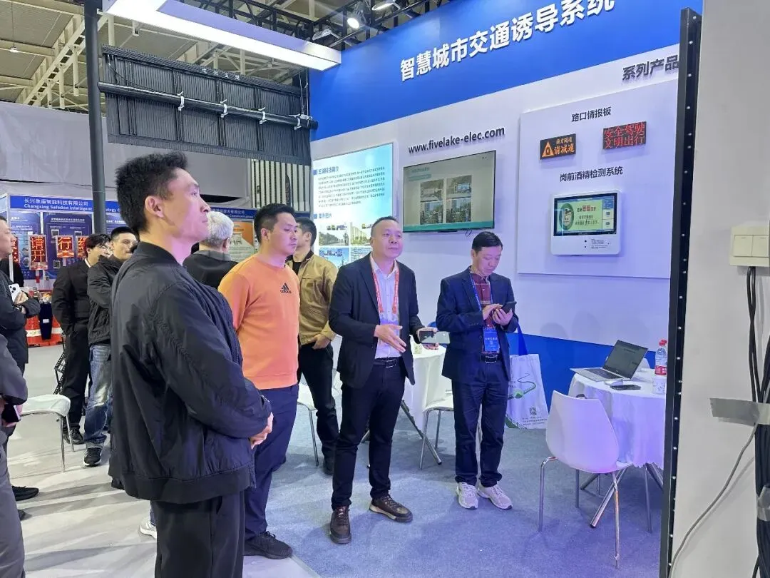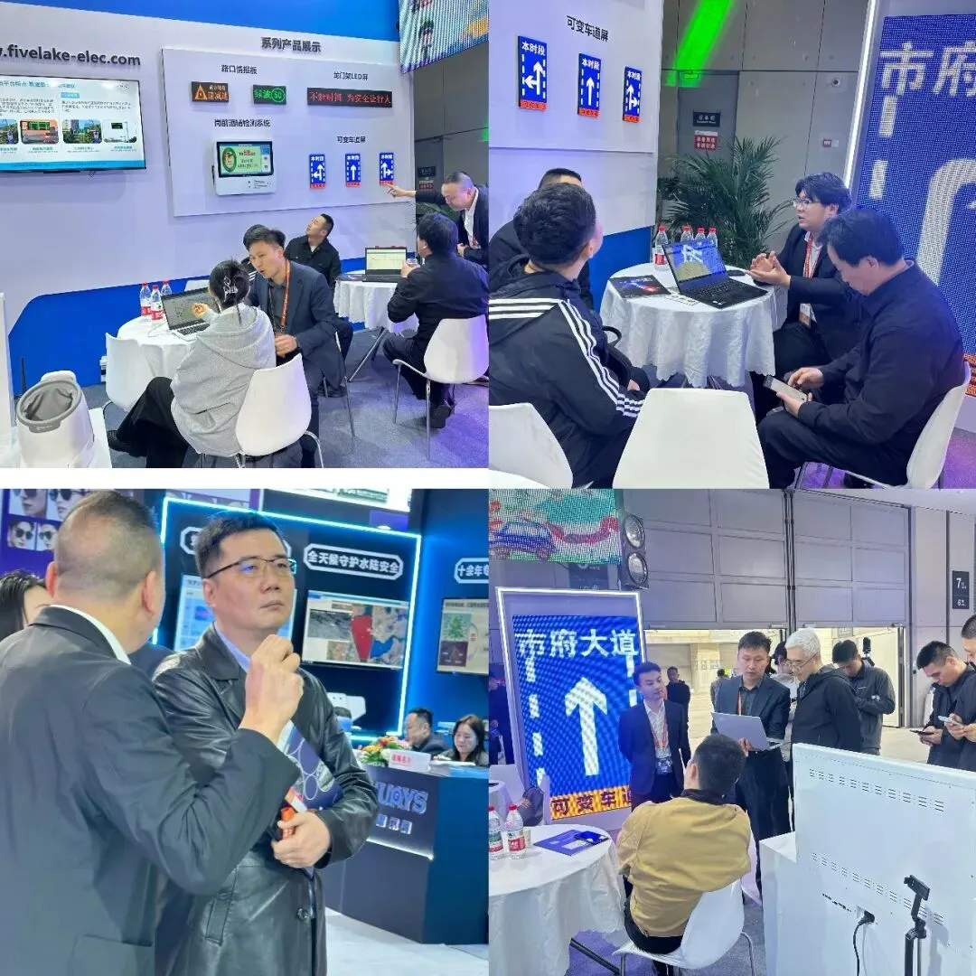 展会期间,五湖科技展台(6T74)人气高涨,前来交流洽谈的客户、合作伙伴络绎不绝。工作人员以专业、热情的态度,向到访嘉宾详细介绍产品技术原理、功能优势及典型案例:实时诱导,动态疏堵:系统联动卡口监控与交通大数据,实时发布路况、限速、预警等信息,动态引导车流,有效缓解拥堵、提升通行效率。