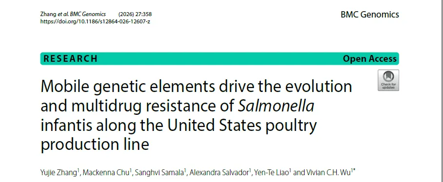 [1] ZHANG Y, CHU M, SAMALA S, et al. Mobile genetic elements drive the evolution and multidrug resistance of Salmonella infantis along the United States poultry production line [J]. BMC Genomics, 2026, 27(1).