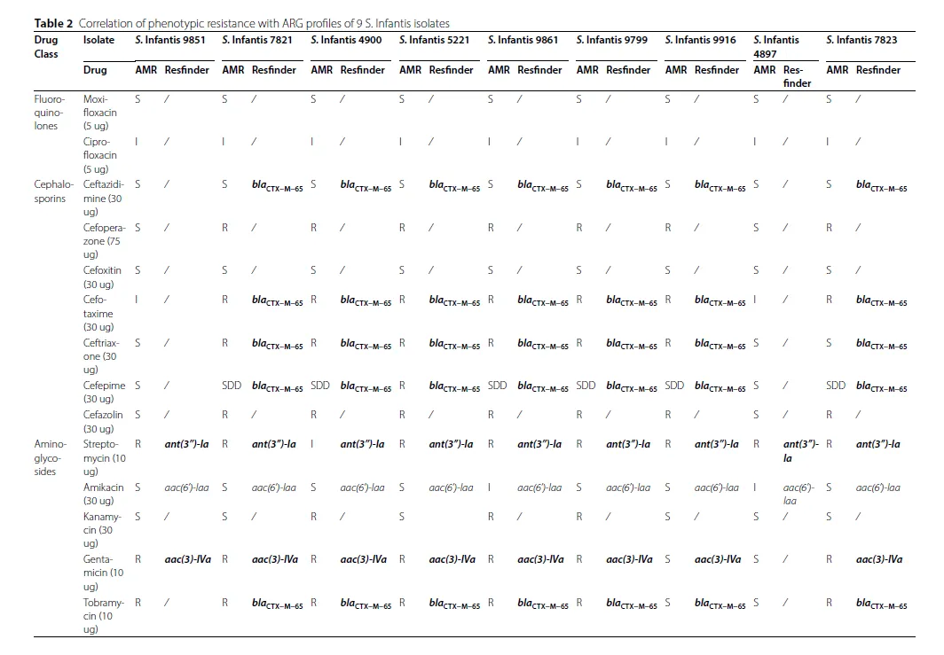 一致性: 本研究证实了ST32是婴儿沙门氏菌的一个全球流行序列型。发现的常见耐药基因组合(如