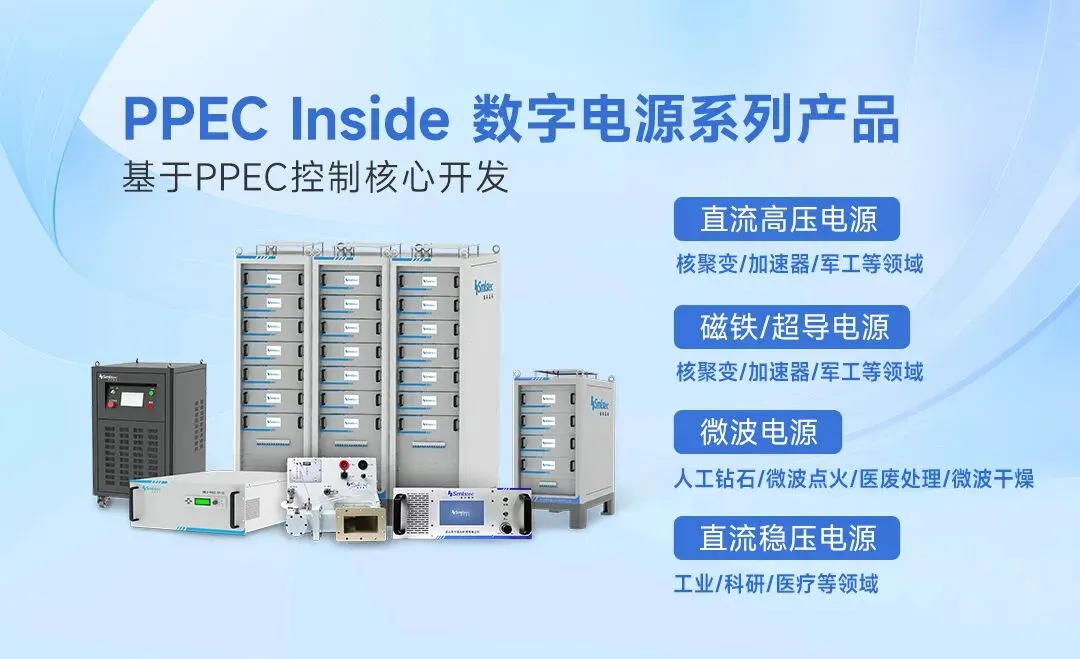 PPEC inside 数字电源产品:含直流高压电源、直流稳压电源、磁铁/超导电源、微波电源,以及定制电源。产品应用聚焦可控核聚变、核医疗、军工、粒子加速器、高校、科研院所等行业及领域。
