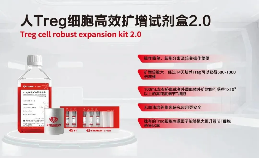同时,品牌还带来了多款血液细胞精准分离与高效扩增产品,具体涵盖NK细胞高效扩增、人NK细胞大体系扩增、DC细胞高效扩增、Treg细胞高效扩增(三一造血 | Treg细胞治疗自身免疫性疾病和肿瘤进展)、γδT细胞高效扩增及抗原特异性T细胞的高效扩增产品,为细胞治疗领域的技术转化与临床应用提供了多元化支持。
