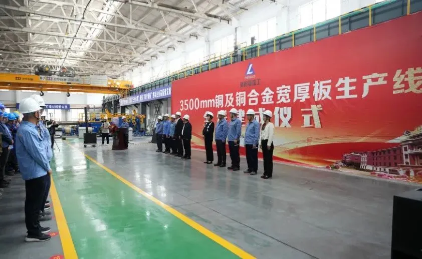 4月28日,洛阳铜加工举行3500mm铜及铜合金宽厚板生产线全线建成仪式,标志着全球首条、世界最宽的铜及铜合金宽厚板专业产线正式落成,填补国内超宽幅高端铜板规模化生产空白。