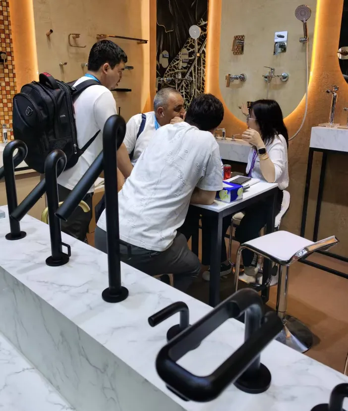 在本届展会上,来自印度和俄罗斯及独联体国家的客户数量明显增加,现场洽谈氛围热烈。多位客户对91系列的高奢天体弧线美24系列的流线美学和89系列的F1设计表现出浓厚兴趣,部分客户已进入样品确认阶段。金恩卫浴将持续深耕俄罗斯市场,以优质产品和专业服务赢得更多信赖。At this fair, the number of buyers from India and Russia and the CIS region increased significantly, with lively discussions at our booth. Some buyers showed strong interest in our products. Several have already moved to sample confirmation and quotation stages. KINEN will continue to deepen its presence in the Russian market with quality products and professional service.