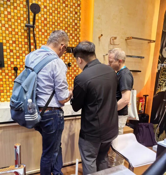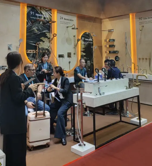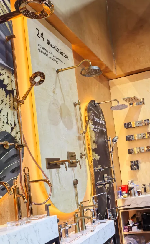 本次广交会上,我们明显感受到卫浴行业的几个趋势:颜色定制需求越来越普遍,客户不再满足于传统的镀铬;材质升级成为共识,实心黄铜依然是高端项目的首选;阀芯品质被更多客户关注,顺滑的开合手感和耐用性直接影响采购决策。At this Canton Fair, we observed several key trends in the bathroom industry: Color customization is becoming increasingly common — buyers are no longer satisfied with traditional chrome finishes (the rose gold of the 91 Series is a perfect example). Material upgrades are now a consensus — solid brass remains the top choice for high-end projects. Cartridge quality received more attention — smooth handle operation and durability directly influence purchasing decisions.
