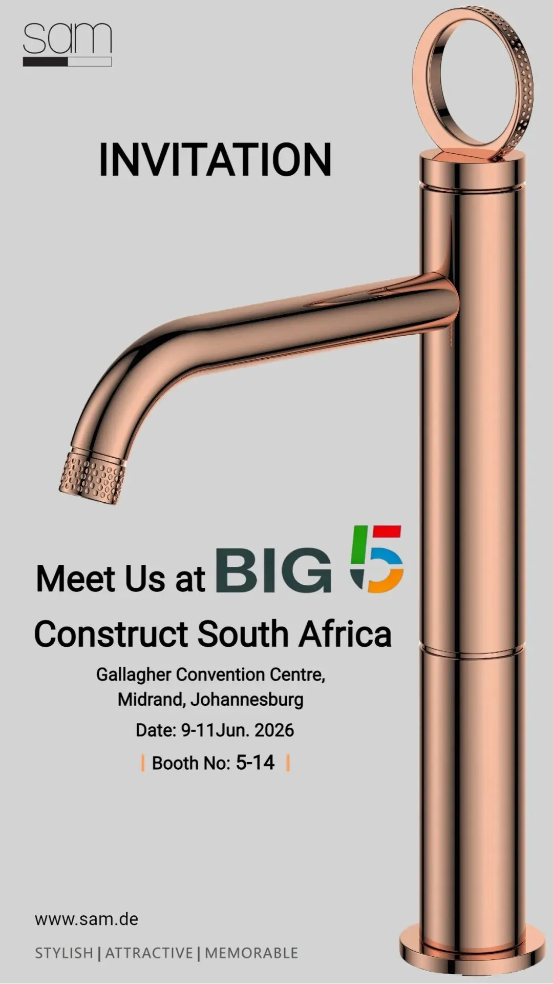 广交会虽然结束了,但金恩的全球之旅才刚刚开始。2026年6月9日至11日,我们将参加 BIG5 Construct South Africa,展位号 5-14,地点在约翰内斯堡的Gallagher Convention Centre。The Canton Fair may be over, but KINEN’s global journey has just begun. From June 9–11, 2026, we will be exhibiting at BIG5 Construct South Africa, Booth 5-14, at the Gallagher Convention Centre in Midrand, Johannesburg.